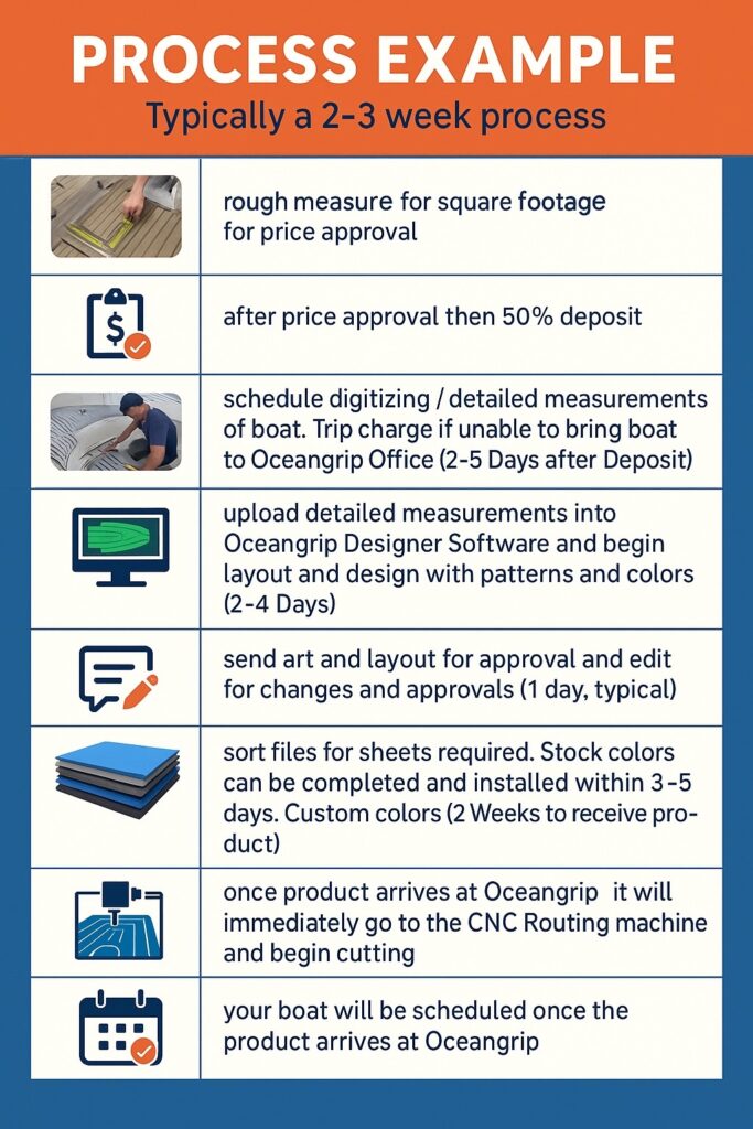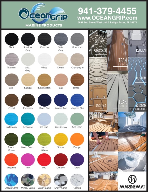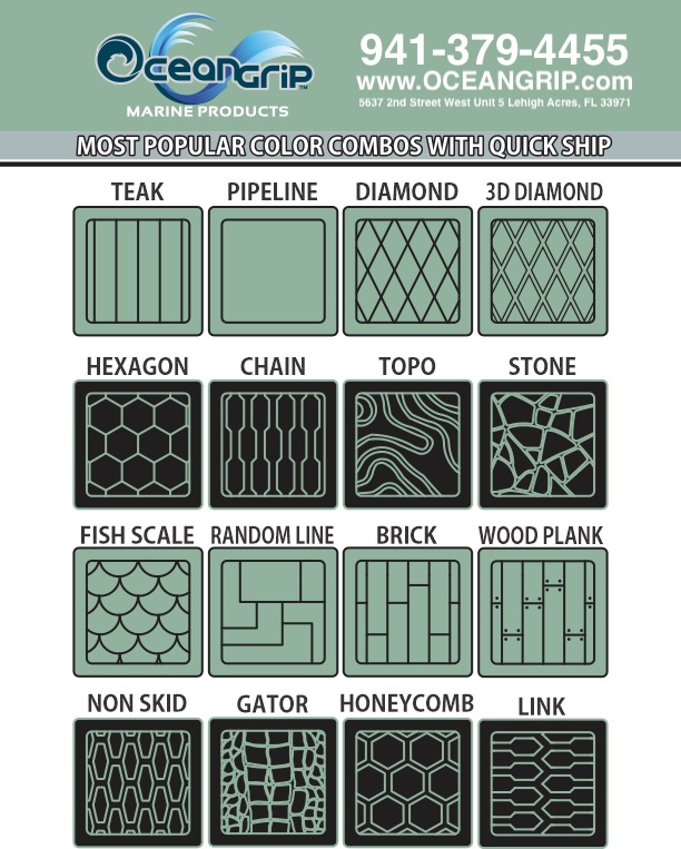 The fun begins with the before and getting creative to customize your after. Patterns, Colors, Thickness, Textures and Logos are all part of the process to make OceanGrip part of your boat! Click on the images to see a before and after and what OceanGrip can add!Â